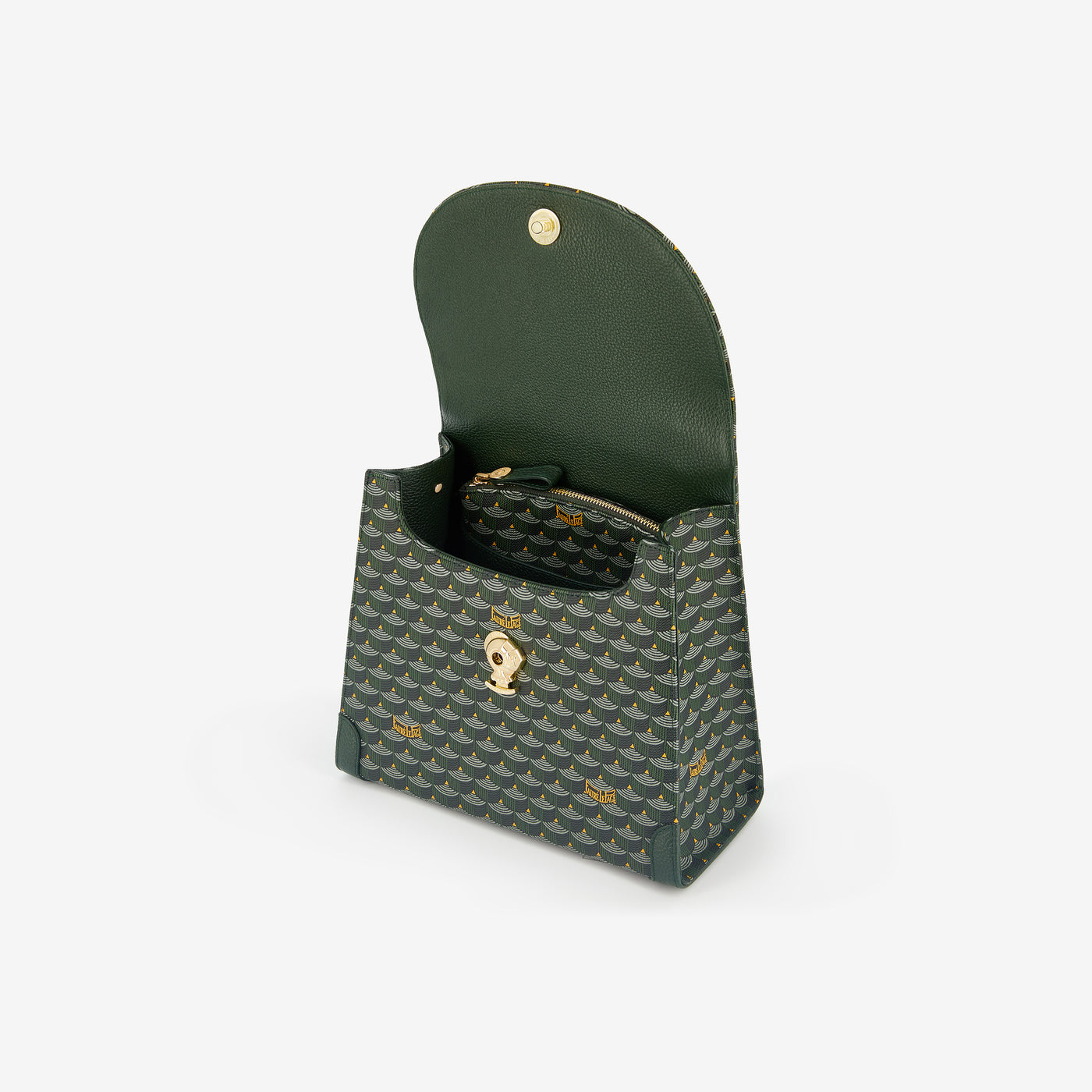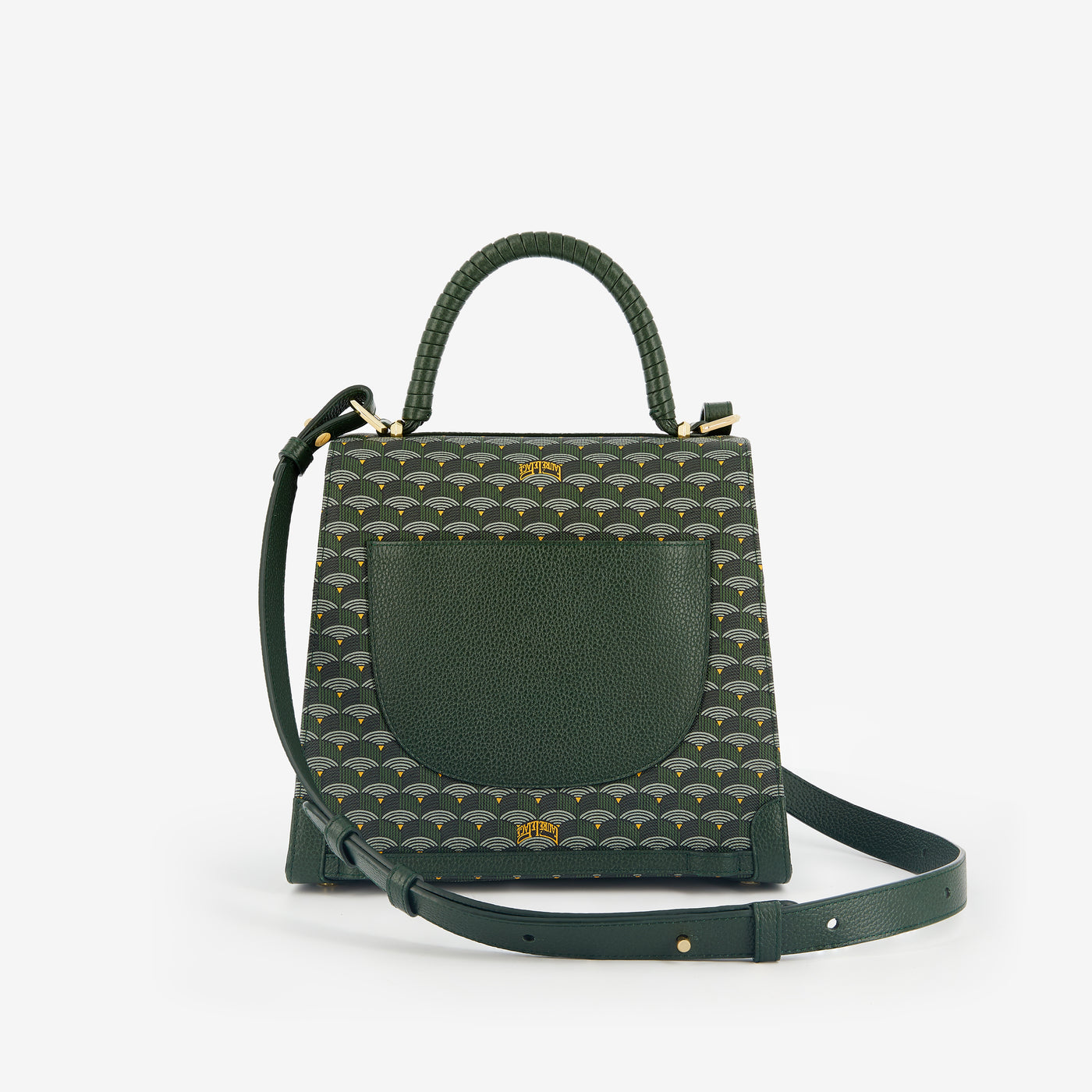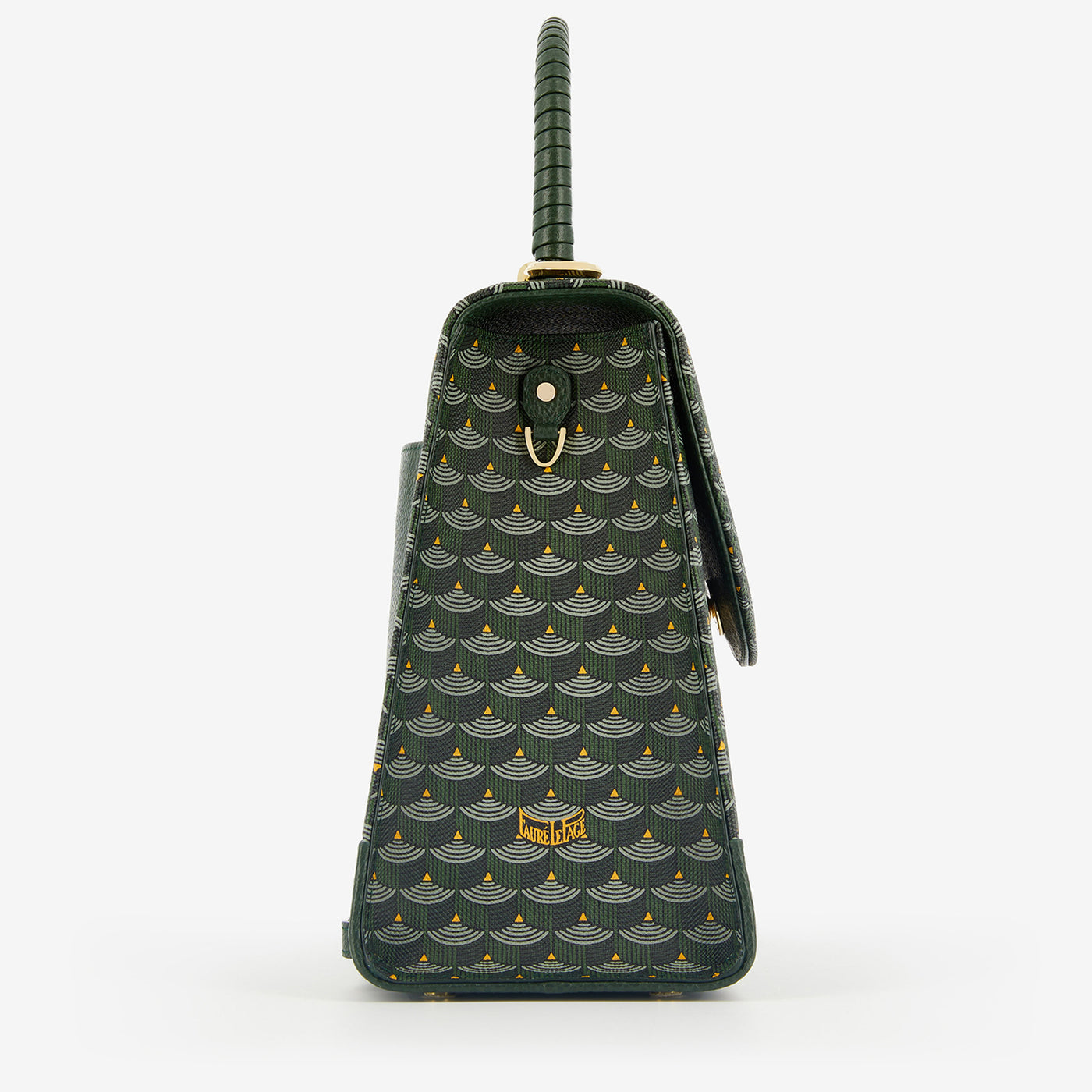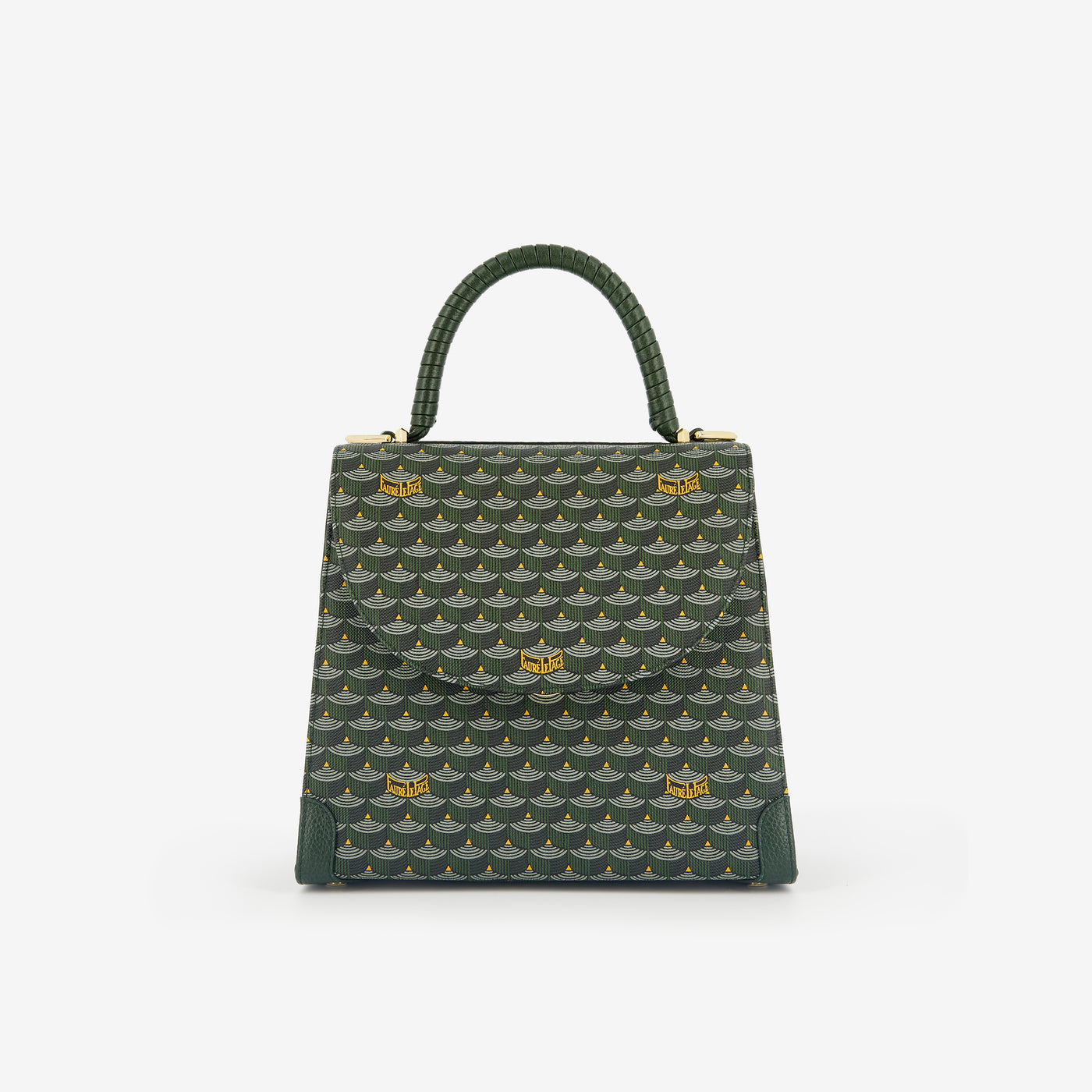 An icon of Fauré Le Page’s timeless style, the new Faurever bag cultivates the art of surprise as a Weapon of Seduction. Its structured silhouette features Canvas screen-printed with the Maison’s emblematic Scale pattern. In a refined detail, the grained calfskin leather inserts are inspired by the corner reinforcements of hunting cases. The flap, sculpted in the shape of a scale, conceals a secret clasp: a helmet engraved with the name “Faurever” as a token of constancy, standing guard like a knight in shining armor. The bag offers three pockets and a detachable pouch for organizing life’s essentials. The two hand-braided leather handles pay tribute to pays tribute to the craftsmanship of sword fitters who once wrapped the sword's handles in precious leathers. Equipped with two shoulder straps, the bag is designed to be worn in endless ways: in the hand, on the shoulder, cross-body, or on the back.